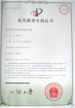 對噴式燒毛機火口裝置專利證書 |